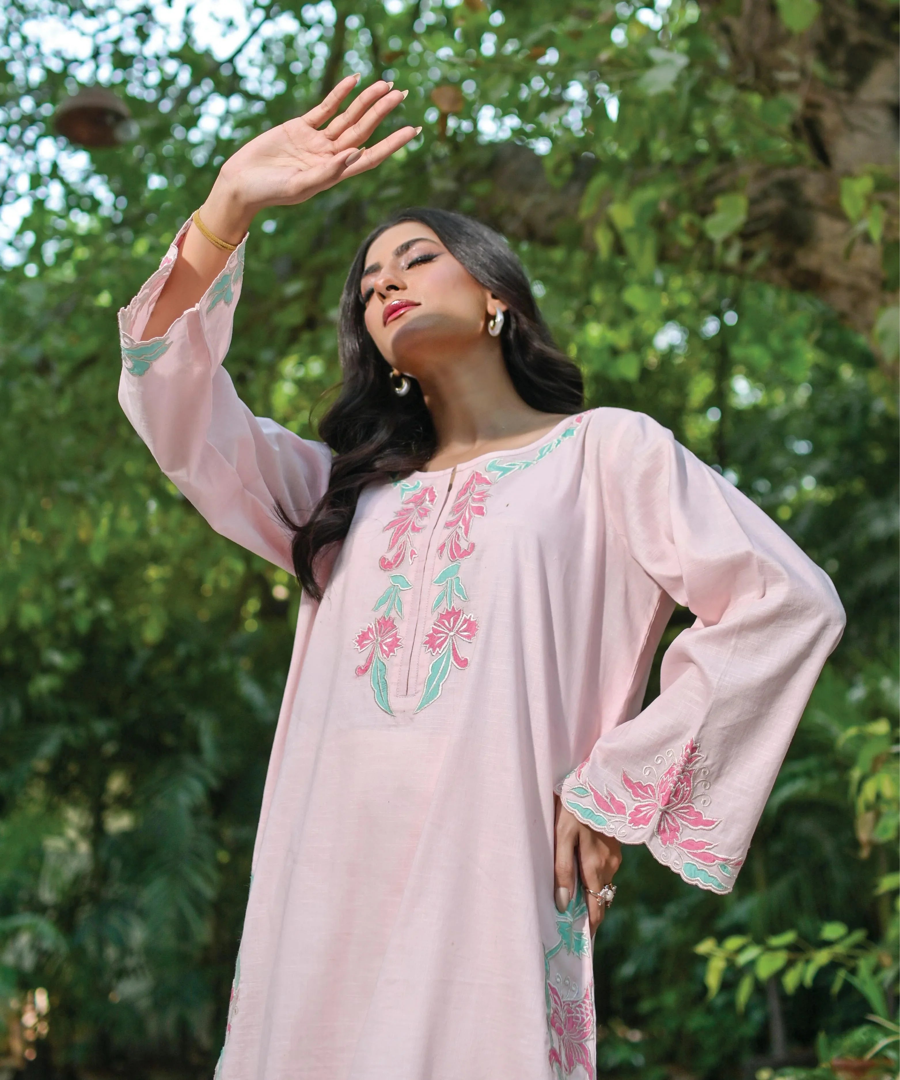 Sakura is a perfect fusion of innovative design and intricate craftsmanship. The dress features exquisite embroidery techniques, with leather used in the flower details, adding a unique, textured contrast to the fabric. The **rouching technique creates soft, sculptural folds that enhance the silhouette, adding depth and movement to the piece....