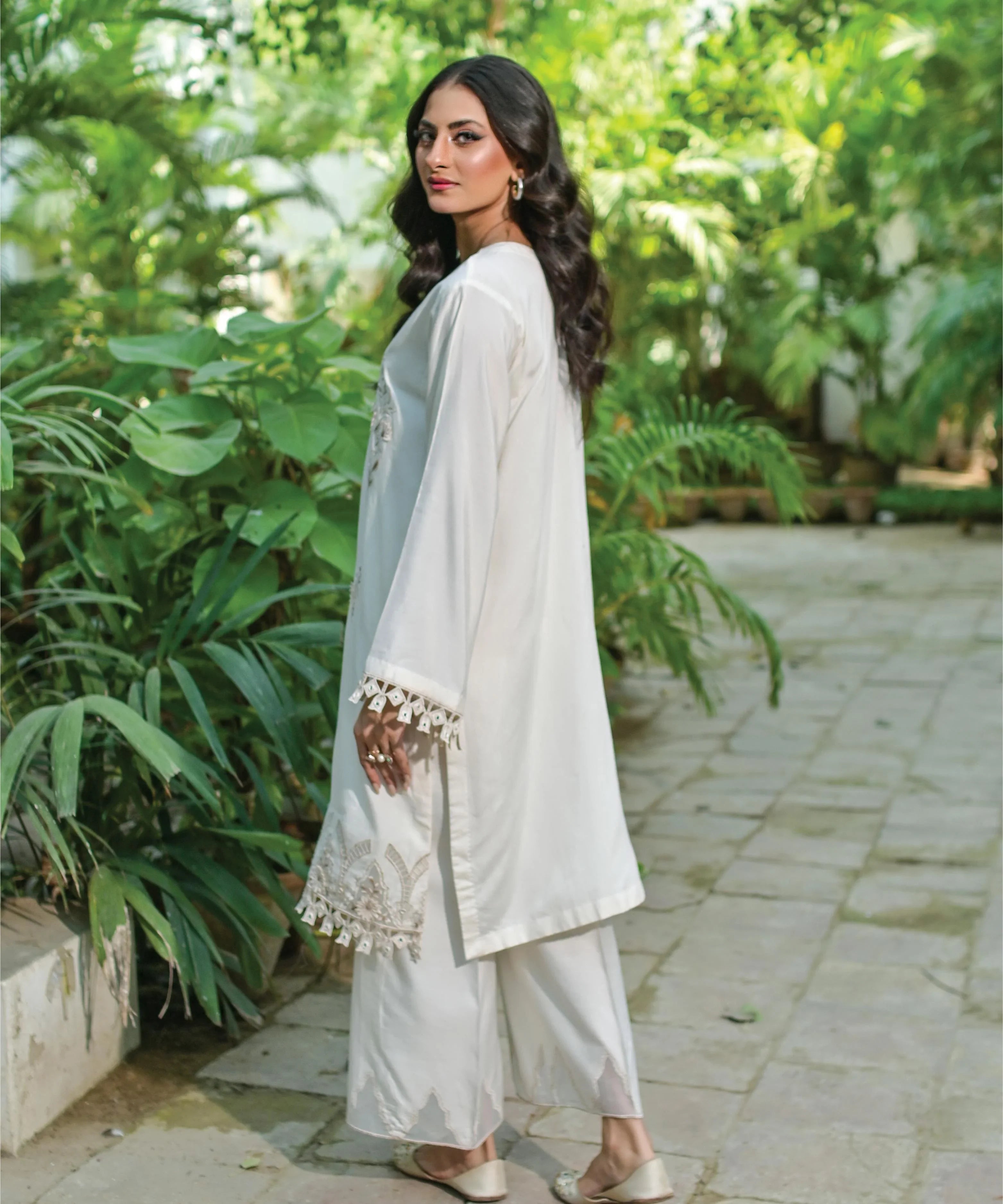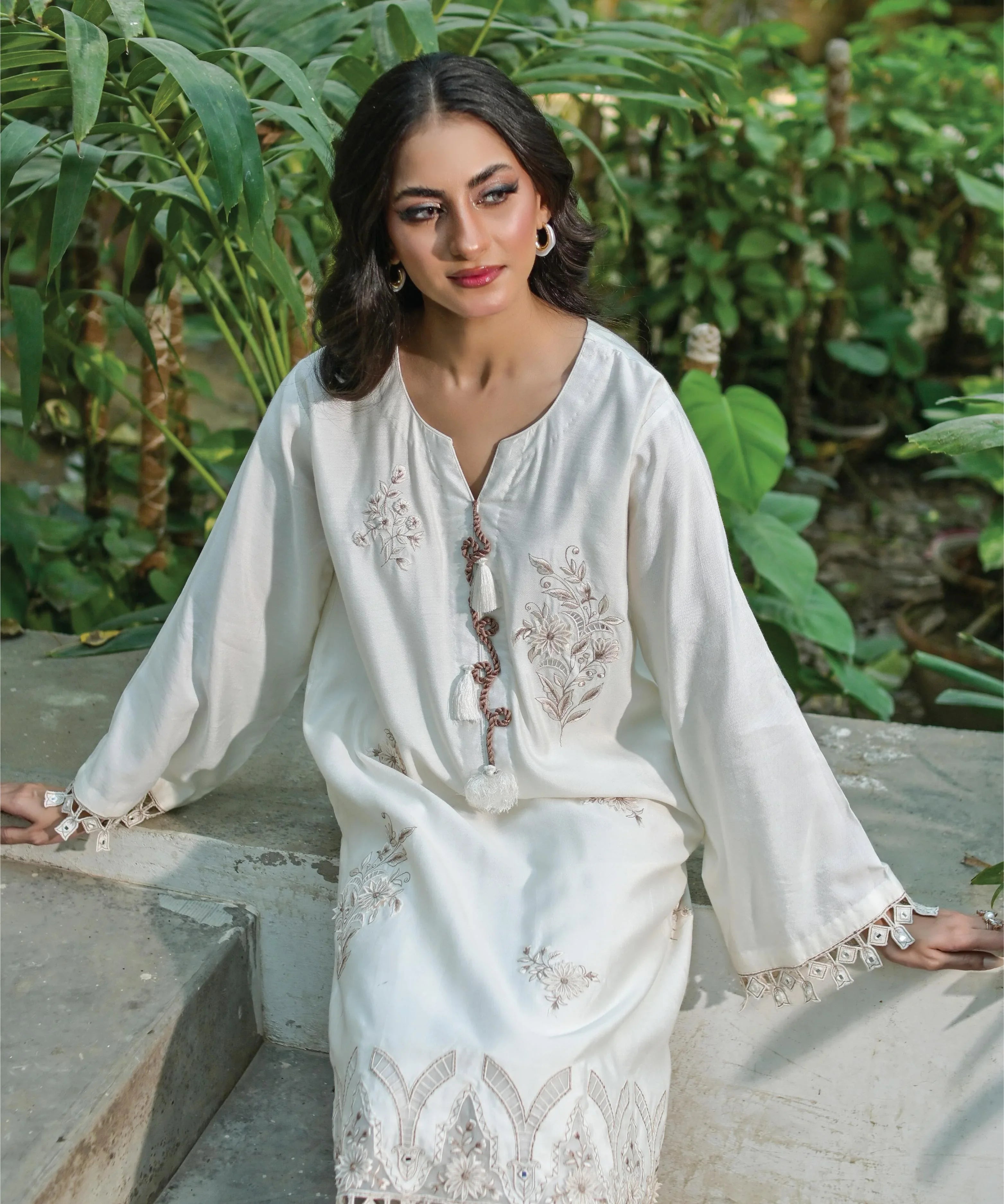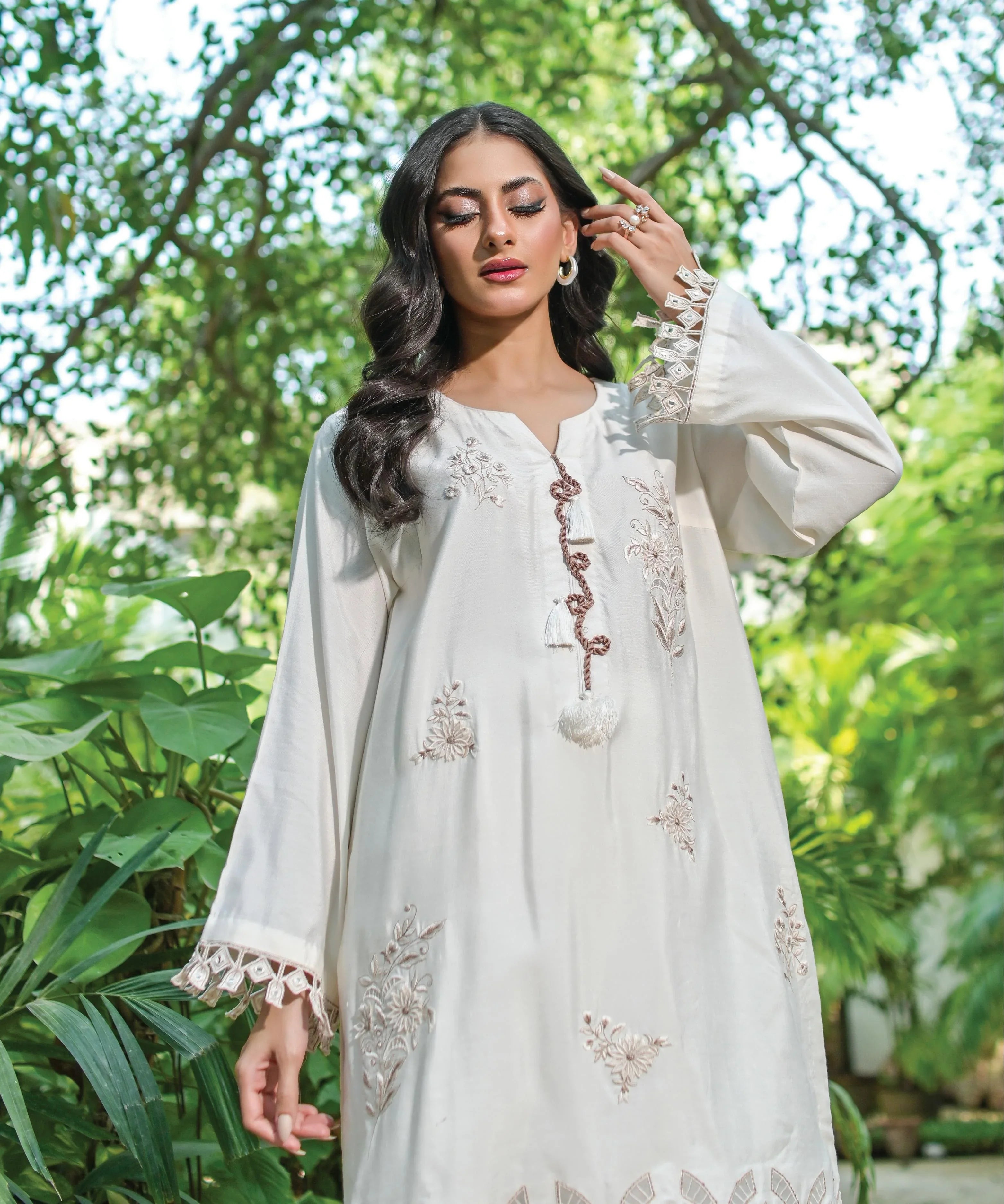 Hana is a stunning display of craftsmanship, featuring intricate details that showcase various embroidery techniques. The 3D flowers created using organza give the shirt a textured, dimensional effect, adding a sense of depth and movement. The delicate organza fabric enhances the floral details, making them appear light and ethereal, yet...