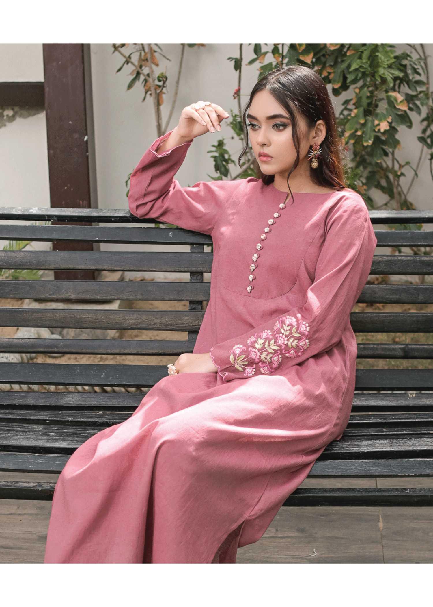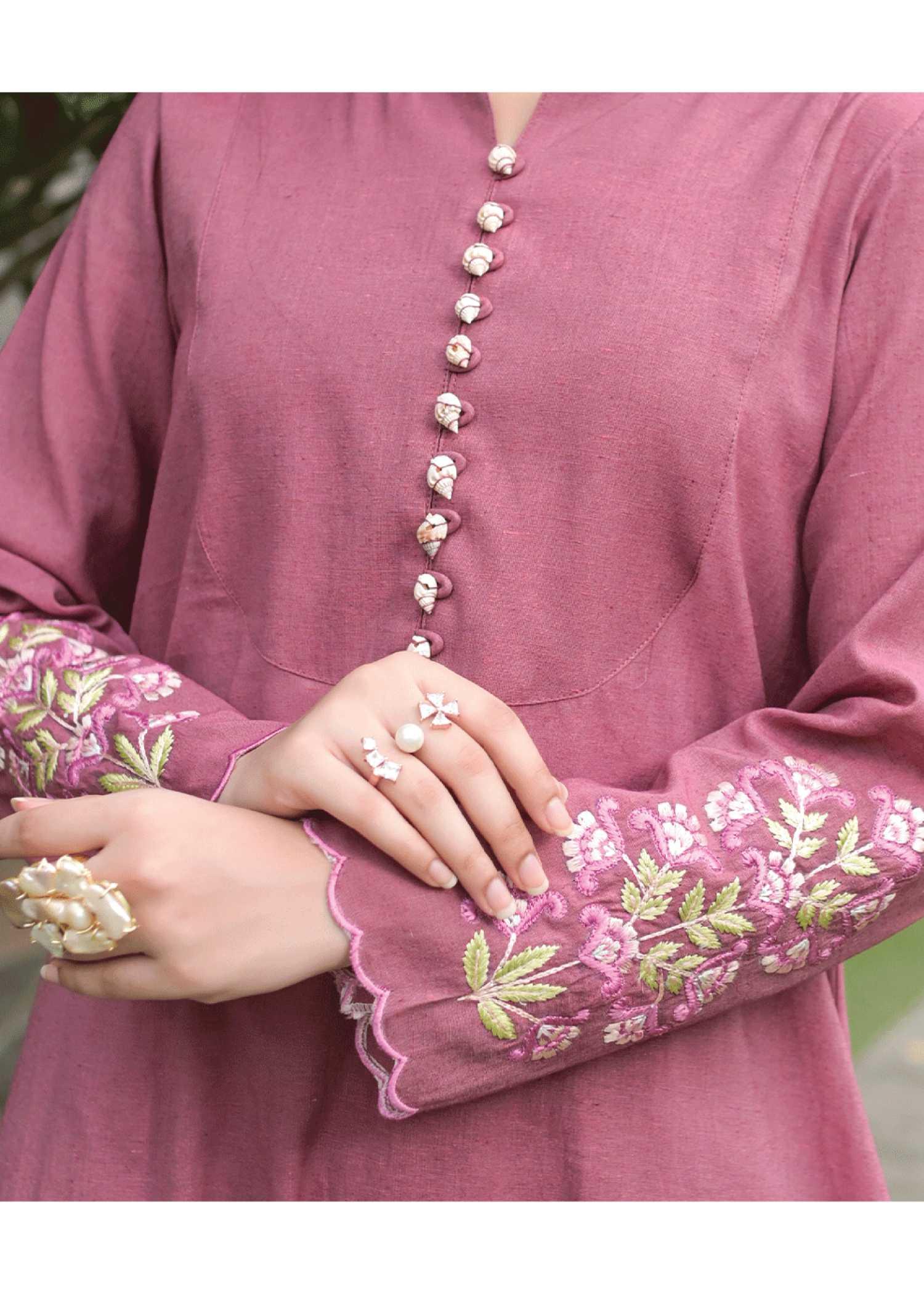 Experience timeless elegance with our 'Dusty Rose Dreams' Ensemble. This muted rose-pink kurta showcases intricate tonal embroidery along the neckline and delicate lace detailing on the cuffs and hem, exuding a refined charm. The flowing silhouette and lightweight fabric ensure comfort while maintaining a sophisticated appearance. This piece can be...